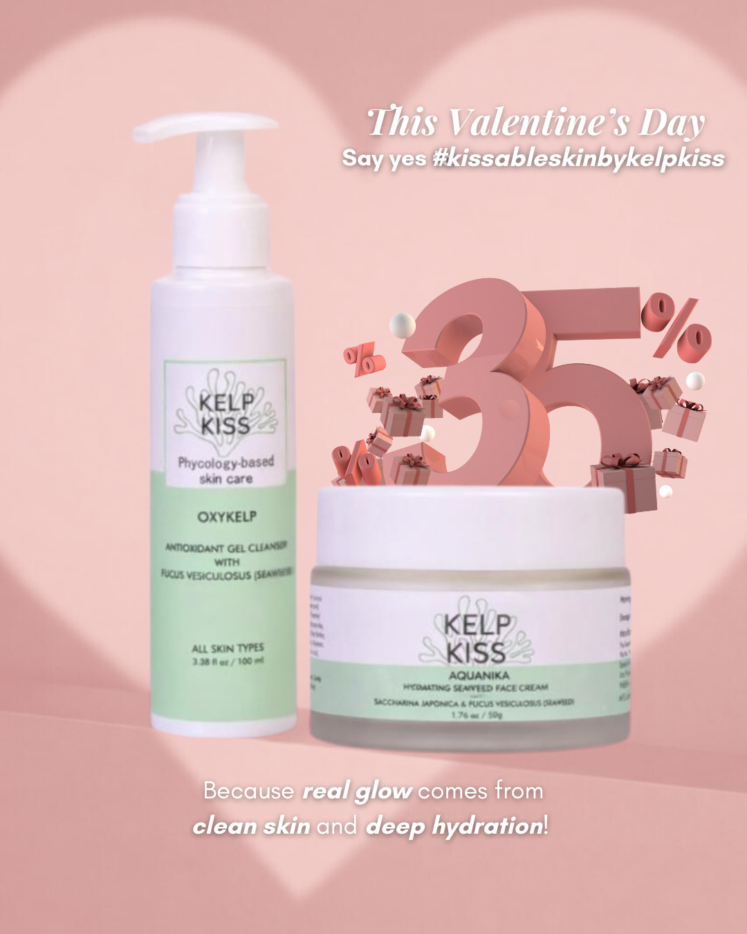 The Kelpkiss Oxy Aqua Duo is a marine macroalgae–inspired skincare combo designed to gently cleanse and hydrate while helping protect skin from daily environmental stressors such as pollution and prolonged screen exposure—without disrupting the skin barrier.